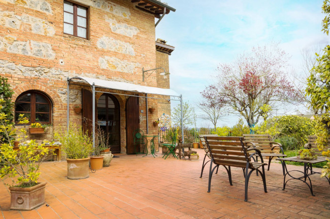 Aria, luce, panorama, indipendenza, storia, elementi architettonici, Toscanità, bellezza sono solo alcuni delle parole che vengono in mente varcando il portone di questa proprietà immobiliare straordinaria. Ci troviamo in località San Felice per presentarvi un terratetto in un podere completamente ristrutturato e dotato di tutti i confort. Accedendo da un ampio cancello carrabile troviamo i due posti auto sotto al loggiato condominiale ed il cancelletto privato che conduce al giardino esclusivo, prima chicca di questo immobile. Le emozioni da decrivere sono molte e vogliamo partire dalla felicità che si prova accedendo ad un salotto doppio dotato di camino ed alla ampia cucina attrezzatissima e abitabile, essenziale per la preparazione delle belle cene in famiglia o tra amici che attendono in soggiorno ammaliati dal camino. Meno poetico, ma molto funzionale, il servizio igienico che troviamo al piano terreno e che consente una perfetta divisione tra la zona giorno e la zona notte assicurando che gli ospisti non abbiano necessità di salire ai piani superiori. Il primo piano, invece, è composto da un bagno e da tre grandi camere da letto; la camera padronale si riconosce subito poichè dotata di bagno "en suite" e di cabina armadio. Non meno interessante il piano sottotetto che oggi è un grande spazio che può essere adibito a studio, a sala hobby o a ulteriore camera da letto. Ma le chicche non sono solo all'interno. Ricordate il giardino del quale vi abbiamo parlato? Ebbene è direttamente collegato alla casa, non troppo grande da risultare di difficile gestione, non troppo piccolo da risultare poco sfruttabile. Si tratta di un bello spazio, parte pavimentato, parte verde nel quale passare dei bei momenti anche con i nostri amici a quattro zampe. Ma avete osservato bene le foto? Non vi sarà sfuggita la depandance in muratura che è un vero e proprio spazio aggiuntivo, dotata anche di servizio, che può tranquilamente diventare un appartamentino da riservare agli ospiti, ad un figlio o ad un parente, con la comodità di uno spazio indipendente, ma all'interno della proprietà. Che dire, non riusciamo a trovare una pecca e siamo sicuri che correrete a prenotare per garantirvi un posto al prossimo open house.